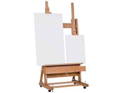 Topkwaliteit extra brede atelierezel van geolied beukenhout, met dubbele mast waardoor je de mogelijkheid hebt om op twee doeken tegelijk te werken of op een heel groot doek.