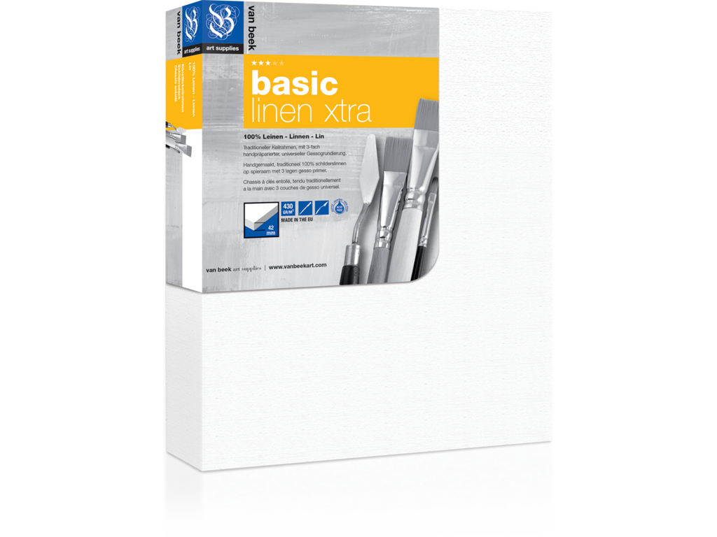 Van Beek Basic linnen schildersdoeken en Van Beek Basic linnen Xtra schildersdoeken zijn stevige doeken die universeel geprimed zijn (3-laags gesso), het schildersdoek is van 100% eerste kwaliteit (430g/m2) linnen!